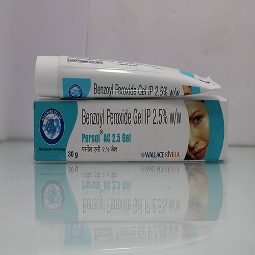 Persol 2.5% Gel is a dermatologist-recommended topical treatment for mild to moderate acne, formulated with Benzoyl Peroxide 2.5%, a proven ingredient that effectively targets acne-causing bacteria. It helps unclog pores, reduce oil production, and prevent new breakouts, making it an excellent choice for individuals with sensitive or acne-prone skin.